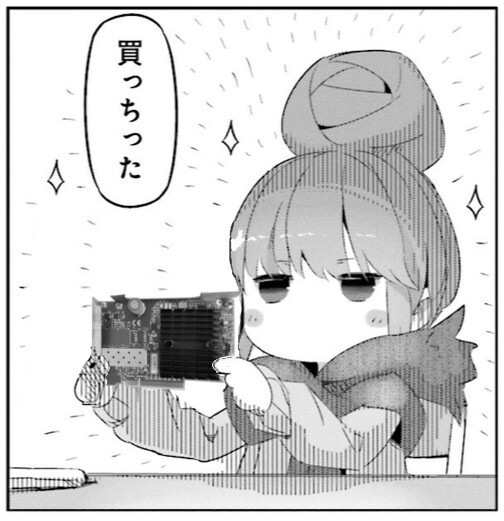 抜き取ったSolarFlareはちょっと久しぶりにCM4で動かしてみたいネタを思いついたので、近いうちに試してみようかなーと思ってます。下調べしてないしどうせ多分動かん系だと思うけど。あとはまあもう一台マシンがあれば10GbEでつながるマシンを増やせて楽しい……かもしれませんね。