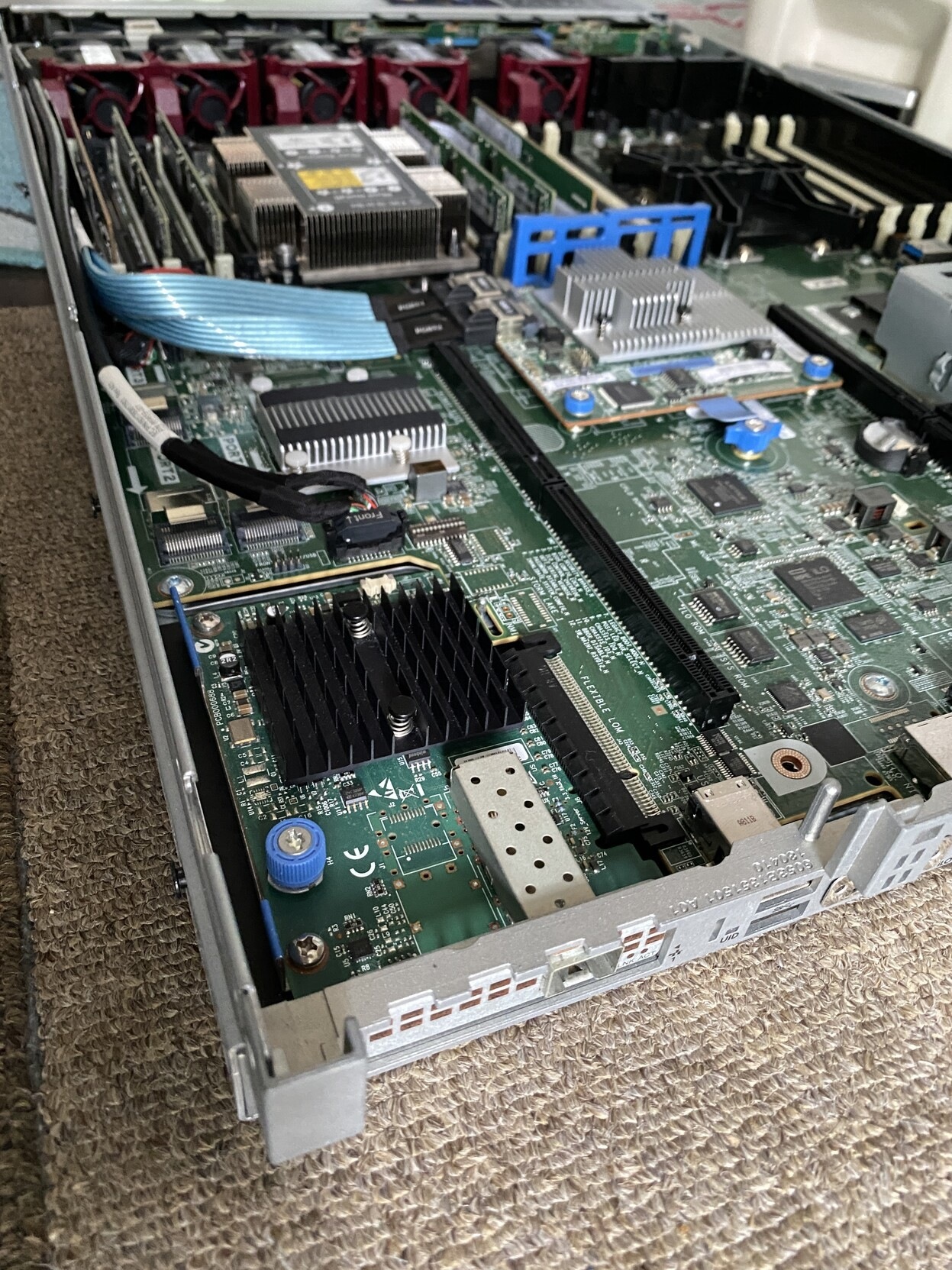 HPEサーバーはふつうのPCI Expressスロットとは別に独自のFlexLOMというスロットが用意されていて、1GbEとか10GbEとか40Gb Infinibandとかのネットワークカードが増設できるようになっています。このFlexLOMをPCIeに変換するオープンハード基板というのも存在するので、そこまでPCIeからかけ離れているわけではなさそうですが、まあ独自形式です。